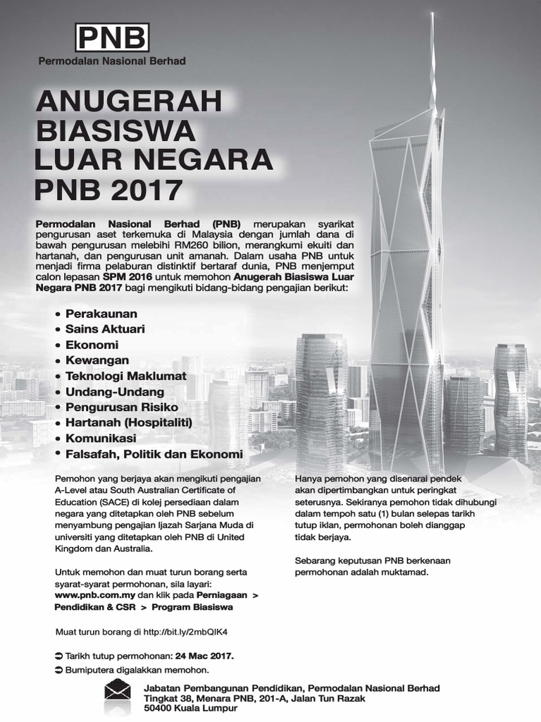 Biasiswa Luar Negara Permodalan Nasional Berhad Pnb 2016 Mypendidikanmalaysia Com